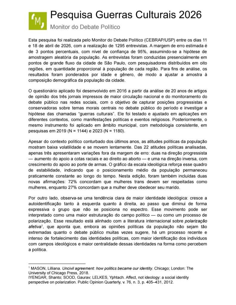Pesquisa de Opinião – ato Acorda, Brasil/Fora Lula, Moraes e Toffoli – 01/03/2026 – São Paulo